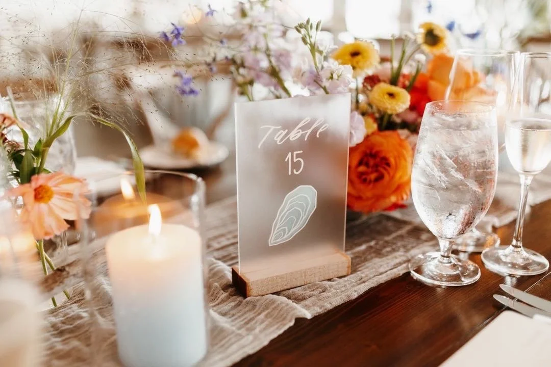 Kelsey + Matt | Oyster-themed acrylic table numbers